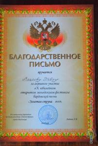 Благодарственное письмо Власову Павлу