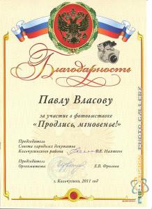 За участие в фотовыставке "Продлись, мгновенье" в 2010 г.